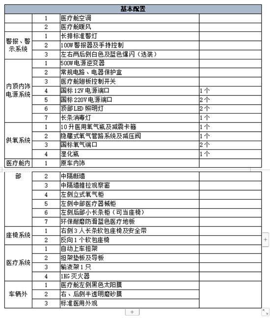 醫(yī)療艙左側(cè)4宮格式 滿柜,內(nèi)置固定氧氣瓶,舒適床墊,氧氣終端以及 器械,創(chuàng)造出一致、直觀的全功能組件,車門設(shè)在右側(cè),提供進(jìn)入車內(nèi)的另一個通道,隔斷作折彎處理,保障駕駛員座椅調(diào)節(jié)舒適性,隔斷后部裝反向軟包座椅,內(nèi)部可作儲物空間。