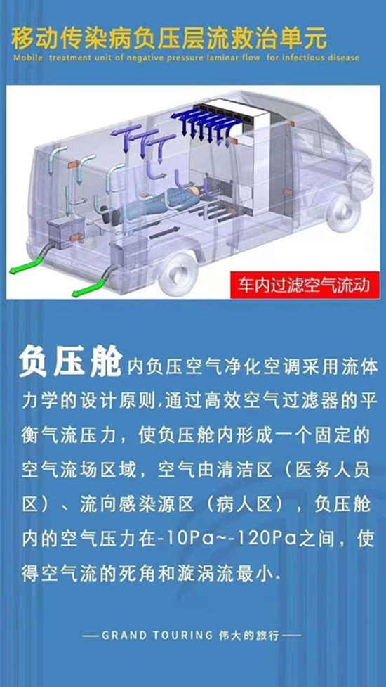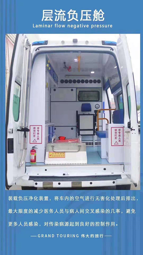 負(fù)壓救護(hù)車是在原監(jiān)護(hù)型救護(hù)車的基礎(chǔ)上加裝了負(fù)壓、過濾、消毒系統(tǒng)。