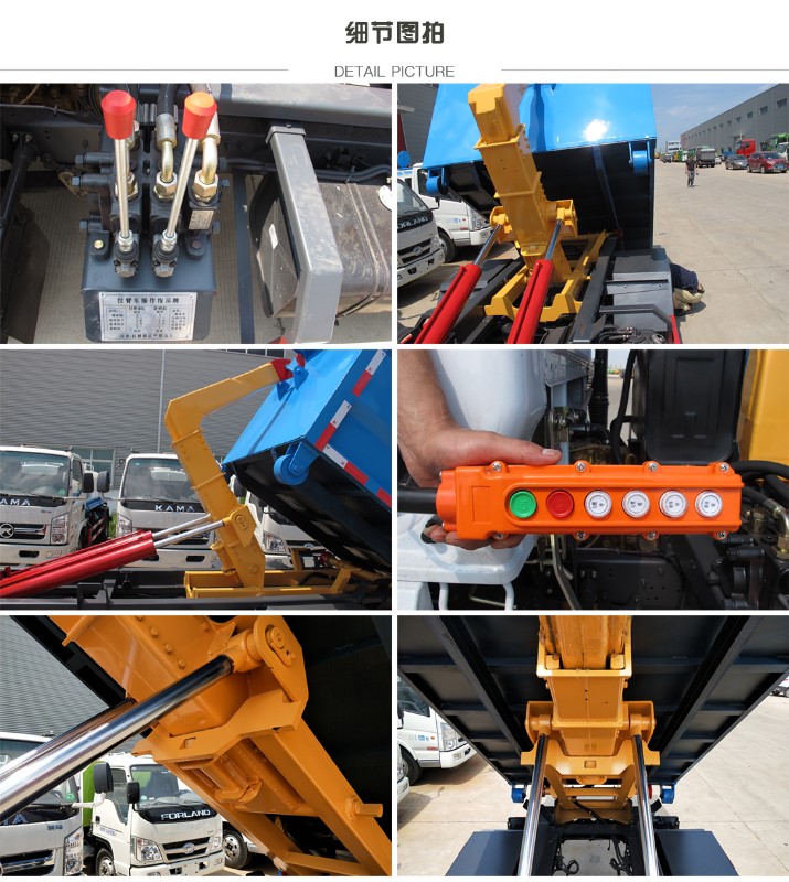 勾臂式垃圾車功能及特點:一車可帶多個大廂,裝卸方便,實現車廂的二次吊裝并使機構為省力,具有結構簡單,操作穩(wěn)定方便,高效率裝卸,節(jié)省人力等優(yōu)點。鉤臂垃圾車可根基用戶要求配備若干個垃圾轉運箱。轉運箱可作為一個簡易、美觀、環(huán)保的垃圾轉運站,大限度提高了車輛的使用效率。